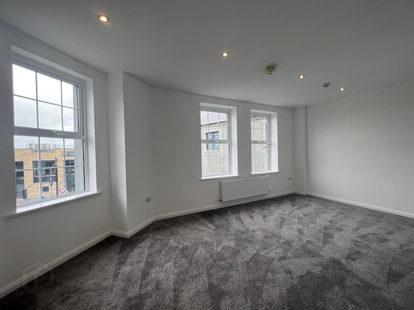 Excellent new build third floor apartment situated in the heart of Ballymena town centre close to all local amenities’ schools and good transport links. The apartment comprises of an airy entrance hallway with intercom, large open plan lounge with feature windows providing extensive views across Ballymena, kitchen with integrated appliances, luxury bathroom suite and three bedrooms (master with en-suite).
