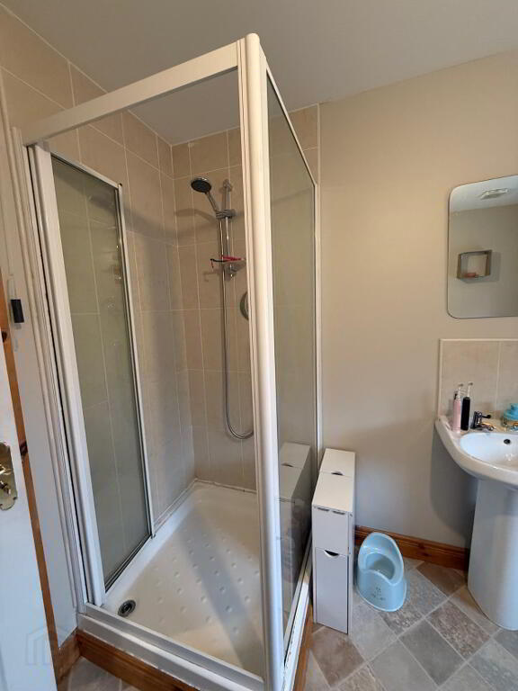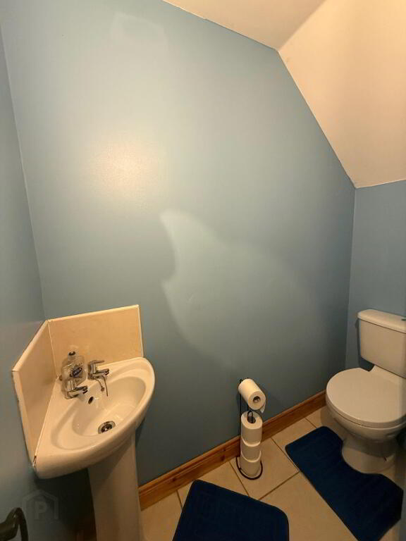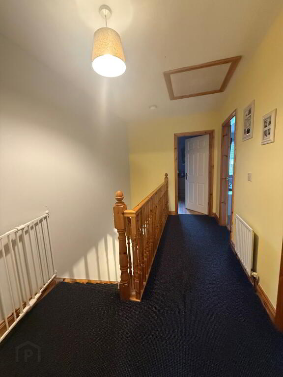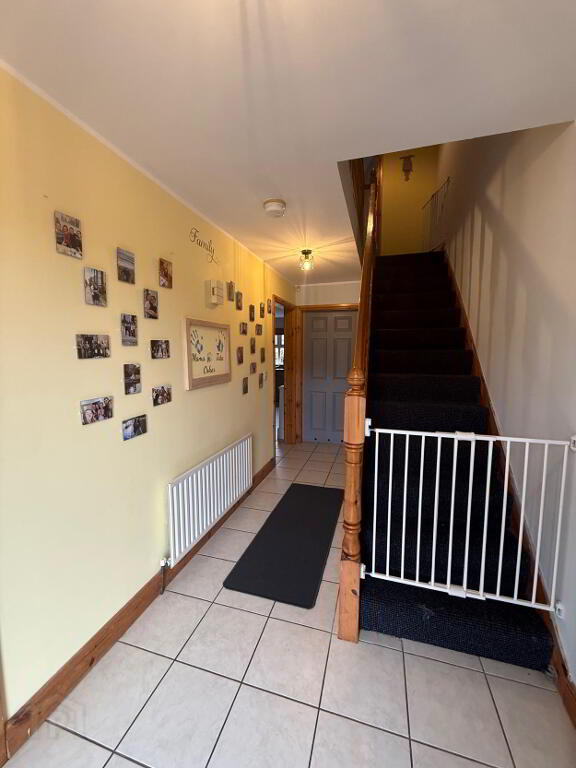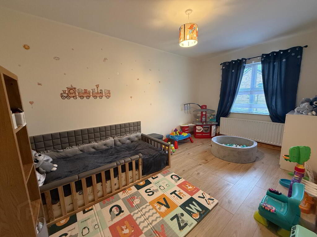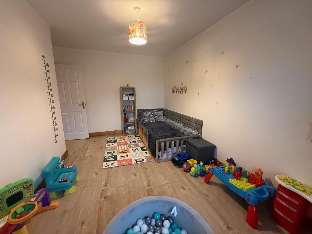 The ground floor comprises a bright and welcoming lounge featuring a charming open fire – perfect for cosy evenings – along with a spacious kitchen/dinette designed for modern family living and entertaining. The kitchen benefits from excellent storage and dining space, complemented by a separate utility room and a convenient downstairs WC.